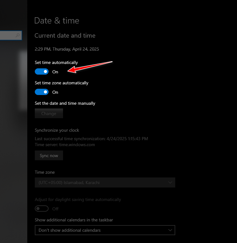 1. ضبط “مزامنة وقت النظام” تلقائيًا
