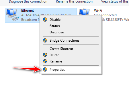 - انقر بزر الماوس الأيمن على اتصال الشبكة النشط لديك واختر خصائص.