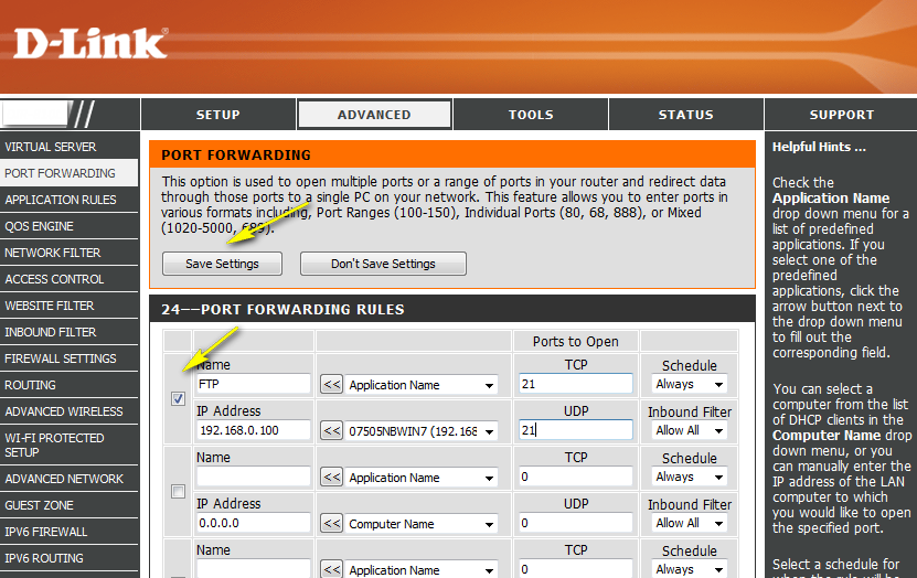 7. إعادة توجيه المنافذ المطلوبة (للمستخدمين المتقدمين فقط)