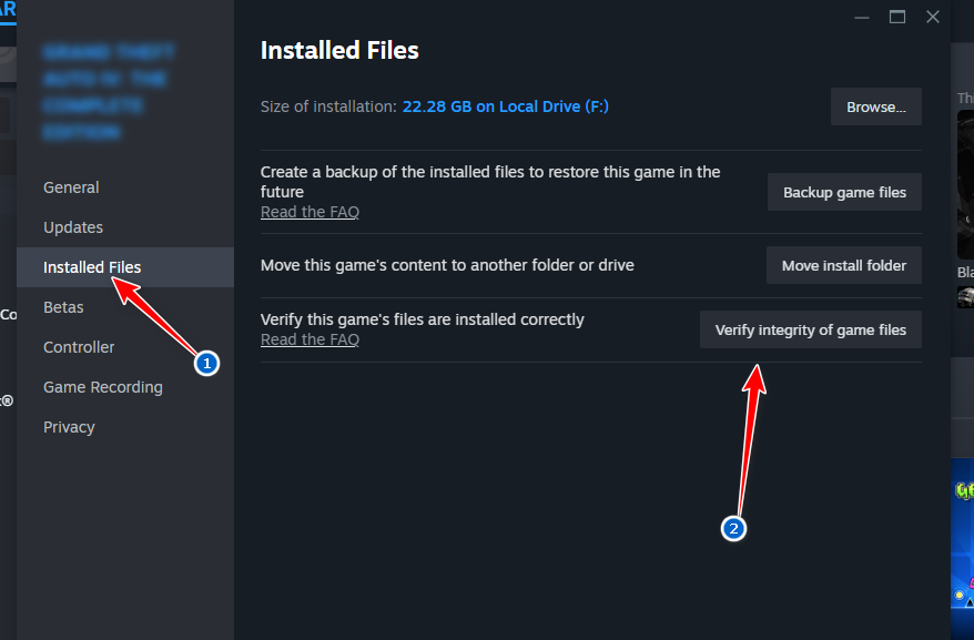 - انتقل إلى علامة التبويب الملفات المحلية (Local Files) وانقر فوق التحقق من سلامة ملفات اللعبة (Verify integrity of game files).