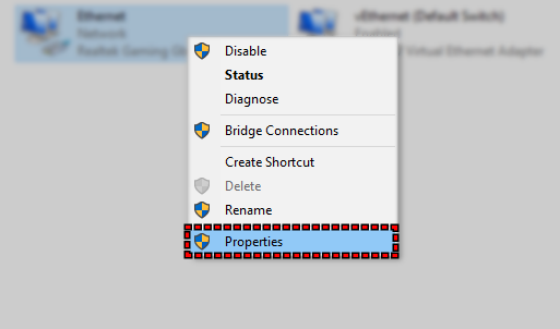 - انقر بزر الماوس الأيمن على اتصال الشبكة النشط الخاص بك واختر Properties (خصائص).