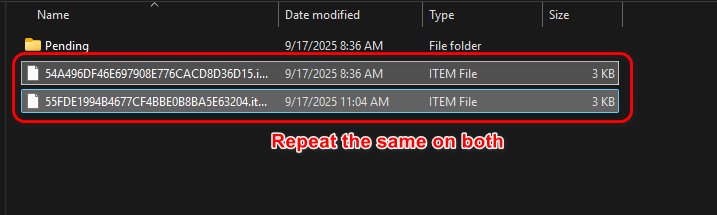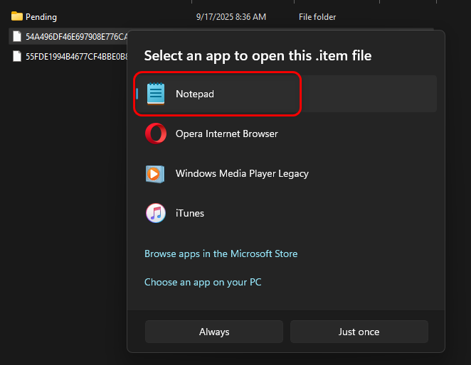 - انقر بزر الماوس الأيمن على ملف .item وافتحه باستخدام Notepad.