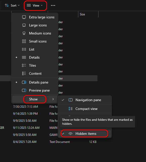 - انتقل إلى محرك الأقراص C:، ثم قم بتمكين العناصر المخفية في إعدادات العرض، وافتح مجلد ProgramData.