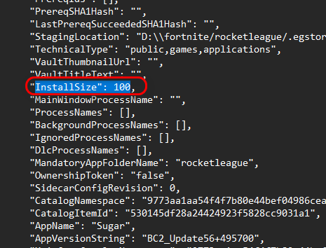 يحتوي كل ملف مانيفيست (manifest) في مجلد manifests على قيمة InstallSize تخبر المشغل بحجم تثبيت اللعبة. إذا تم تعيين هذه القيمة على 0 أو أصبح الملف تالفًا، فسيفشل Epic Games Launcher في البدء. يمكن أن يؤدي تعديل هذه الملفات عن طريق تغيير قيمة InstallSize إلى 100 أو أي رقم آخر صالح غير صفري إلى تصحيح البيانات الخاطئة والسماح للمشغل بالعمل بشكل صحيح.