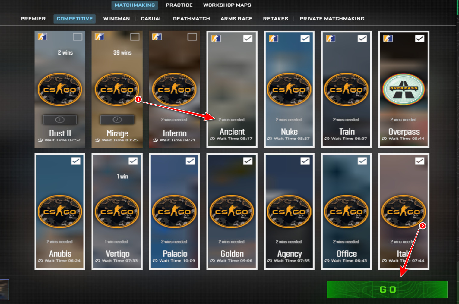 - في القائمة الرئيسية لـ CS2، افتح Competitive (تنافسي).