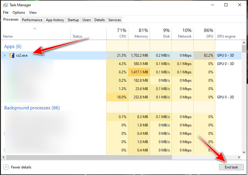 - ابحث عن cs2.exe و steam.exe، وإذا كان موجودًا، steamwebhelper.exe.