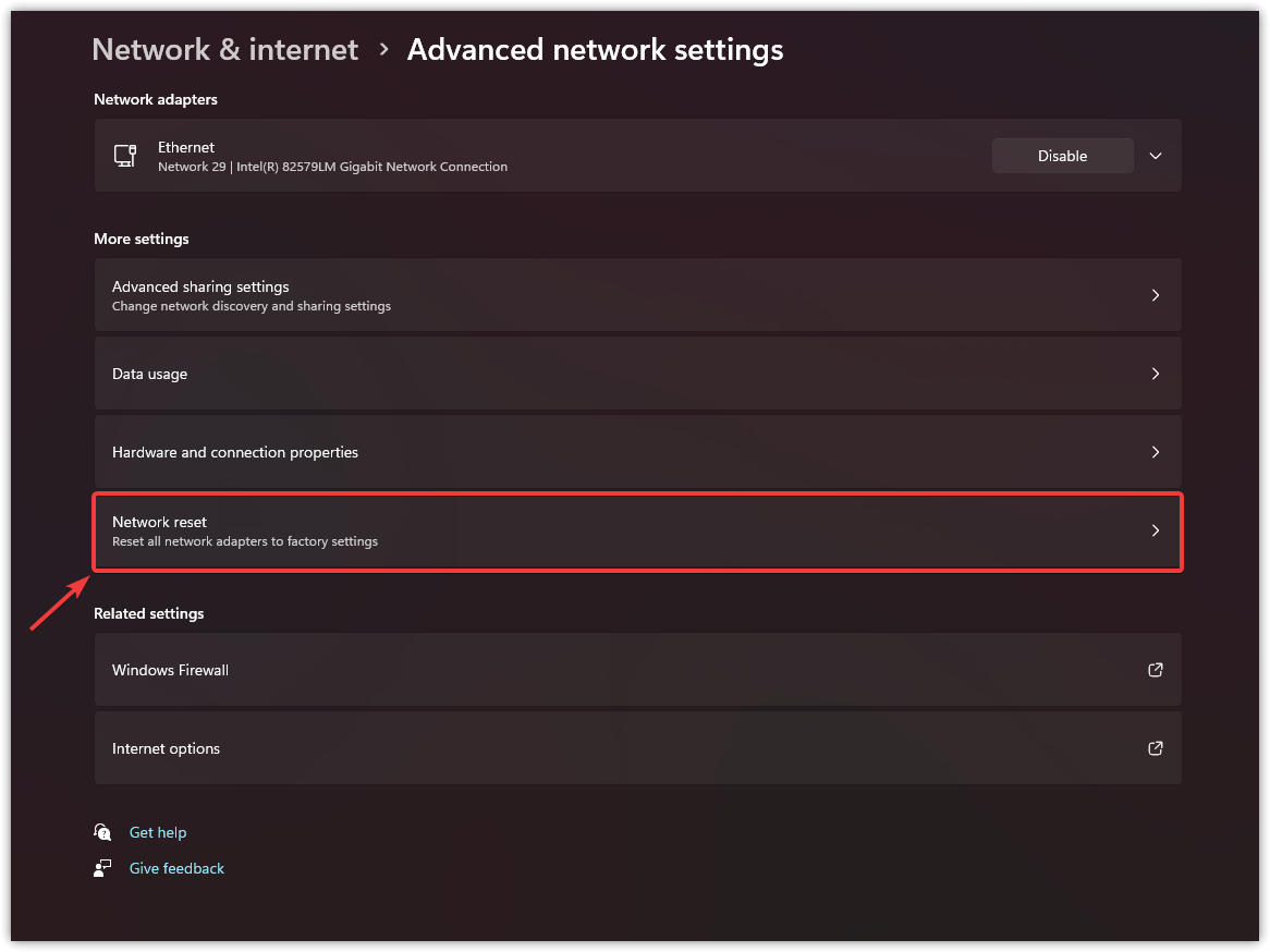 إذا لم تنجح أي من الحلول السابقة، فقد تكون المشكلة متجذرة في تكوين شبكة النظام الخاص بك. يمكنك محاولة إعادة تعيين إعدادات الشبكة، مما سيؤدي إلى مسح DNS وإعدادات الوكيل وتكوينات المحول التي قد تتداخل مع اتصالك. تعمل هذه العملية على استعادة جميع الإعدادات المتعلقة بالشبكة إلى حالتها الافتراضية.