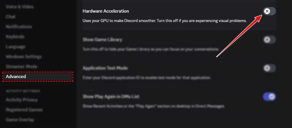 1. تعطيل تسريع الأجهزة في Discord (إذا كان ذلك ممكنًا)