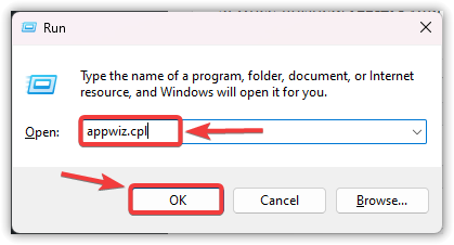 - اضغط على Win + R، واكتب appwiz.cpl، وانقر فوق موافق (OK).