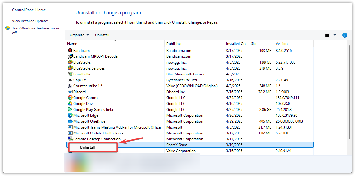 - ابحث عن Path of Exile 2 في القائمة، وانقر بزر الماوس الأيمن عليها، وحدد إلغاء التثبيت (Uninstall).