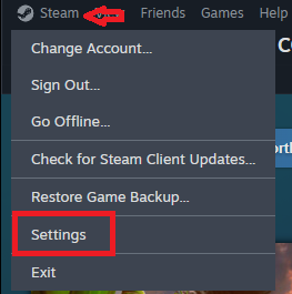 1. افتح Steam وانتقل إلى الإعدادات.