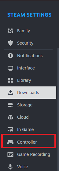 7. انتقل إلى وحدة التحكم > تمكين Steam Input.