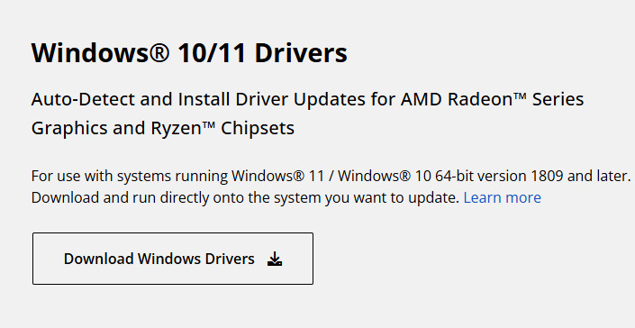 - لمستخدمي AMD، انتقل إلى الموقع الرسمي لـ AMD وقم بتنزيل أحدث برامج التشغيل.