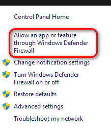- حدد السماح لتطبيق أو ميزة عبر Windows Defender Firewall.