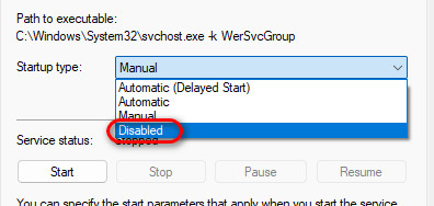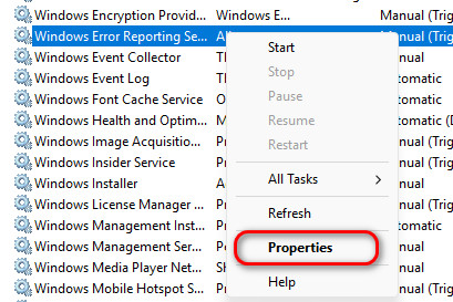 - في نافذة الخدمات، حدد موقع Windows Error Reporting Service.