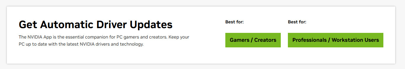 - لمستخدمي NVIDIA، انتقل إلى الموقع الرسمي لـ NVIDIA وقم بتنزيل أحدث برامج التشغيل.
