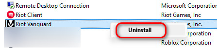 - قم بإلغاء تثبيت Riot Vanguard أيضًا.