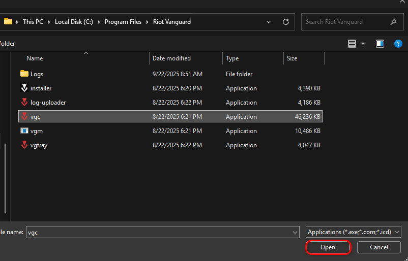 - C:Program FilesRiot Vanguard ← أضف vgc