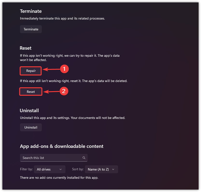 4. إعادة تعيين تطبيق Xbox