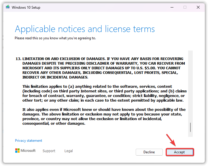 - شغّل أداة إنشاء الوسائط واقبل شروط الترخيص.