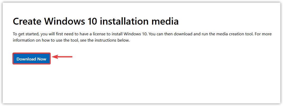 - قم بزيارة موقع Microsoft الرسمي وقم بتنزيل أداة إنشاء الوسائط.
