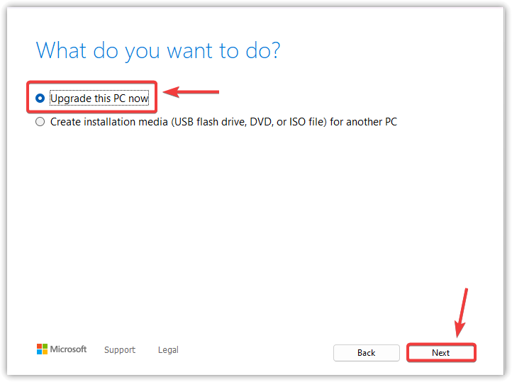 - اختر ترقية هذا الكمبيوتر الآن ثم انقر على التالي.