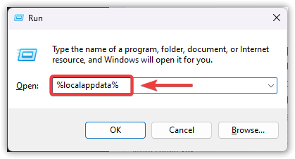 - اضغط على Windows + R، ثم اكتب %localappdata%، واضغط على Enter.