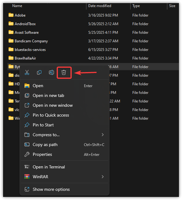 3. مسح بيانات AppData للعبة التي بها مشكلة