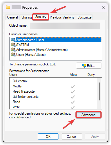 - انتقل إلى علامة التبويب الأمان وانقر على خيارات متقدمة.