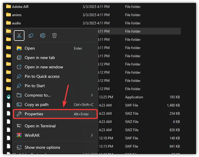 - انقر بزر الماوس الأيمن على كل مجلد واختر خصائص.