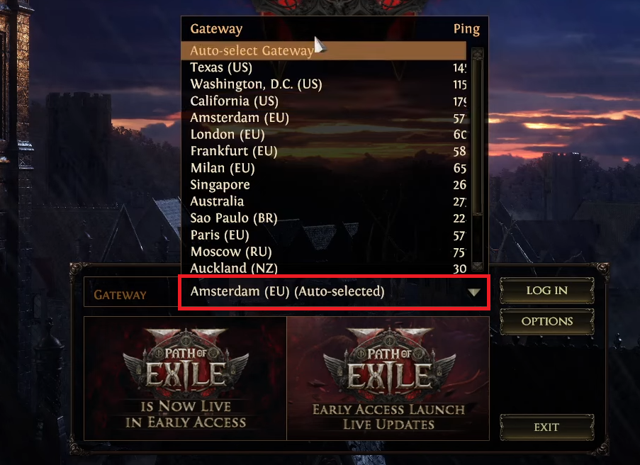 إذا كان الخادم الذي تحاول الانضمام إليه معطلاً أو غير مستقر، فقد يؤدي التبديل إلى بوابة أخرى إلى حل المشكلة. هذا يجبر اللعبة على الاتصال عبر منطقة خادم مختلفة وسليمة.