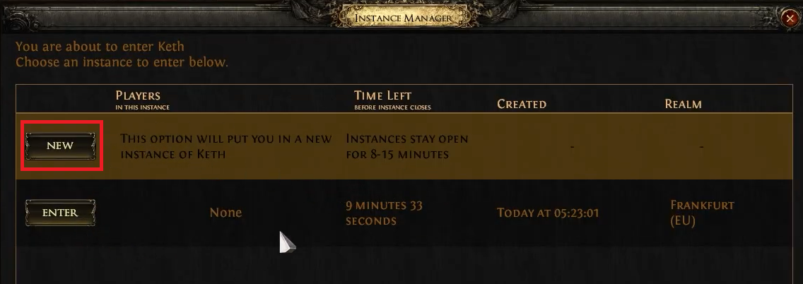 إذا فشلت اللعبة في نقلك بين الخرائط أو المناطق، فقد يكون هذا المثيل المحدد غير متاح. يؤدي الضغط باستمرار على مفتاح Ctrl أثناء النقر على خريطة أو نقطة طريق إلى إنشاء مثيل جديد يدويًا، مما يجبر اللعبة على تحميل مثيل جديد.