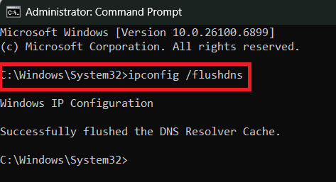 إذا لم يساعد إعادة تشغيل جهاز التوجيه (الراوتر)، فإن تشغيل الأمر ipconfig /flushdns يمسح سجلات DNS القديمة. هذا يجبر نظامك على جلب معلومات توجيه جديدة من خوادم DNS، مما يحل مشكلات عدم تطابق النطاقات المحتملة.