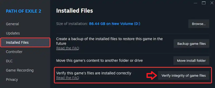 إذا لم تنجح أي من الطرق المذكورة أعلاه، يمكن أن يؤدي إعادة تثبيت Path of Exile 2 إلى إصلاح المشكلات المستمرة الناتجة عن ملفات التثبيت التالفة أو بيانات ذاكرة التخزين المؤقت التالفة. تضمن إعادة التثبيت النظيفة استعادة جميع المكونات إلى حالتها الافتراضية لاتصال مستقر.