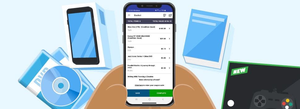 بالنسبة للعناصر التقنية مثل الهواتف المحمولة وأجهزة الكمبيوتر المحمولة، سيُقدم لك Decluttr عرضًا بناءً على طرازها وسنة إصدارها وحالتها.