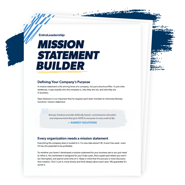 لست مضطرًا إلى اكتشاف ذلك بمفردك! قم بتنزيل أداة EntreLeadership Mission Statement Builder السهلة الاتباع والتي ستساعدك في كتابة بيان مهمة يشعل حماسك وحماس فريقك ويوحدكم على نفس الهدف. *ملاحظة الخبراء: بيان المهمة الواضح والموجز هو أساس ثقافة الشركة القوية.*