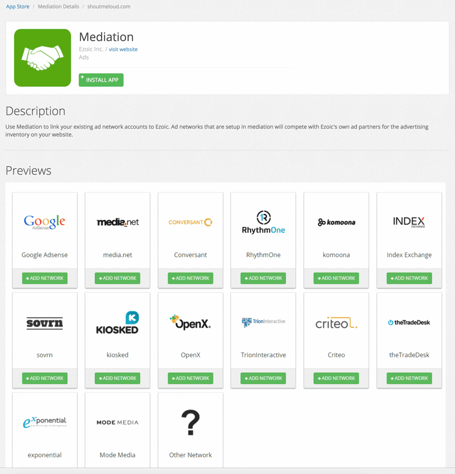 يسمح لك تطبيق Mediation بربط إعلاناتك الحالية باختبار Ezoic.