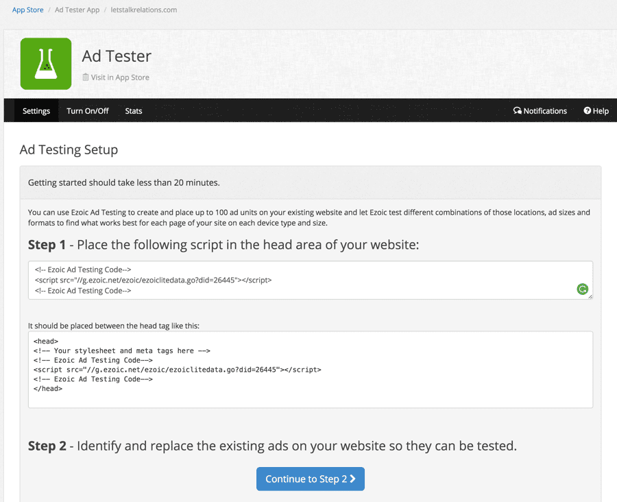 سيتعين عليك أيضًا مُتابعة خطوات الإعداد الإضافية التي سيُساعدك Ezoic في تنفيذها. أنها تنطوي في الغالب على إضافة بعض مقتطفات الشفرة إلى موقعك بحيث يُساعد على أن يعمل Ezoic بشكل صحيح.