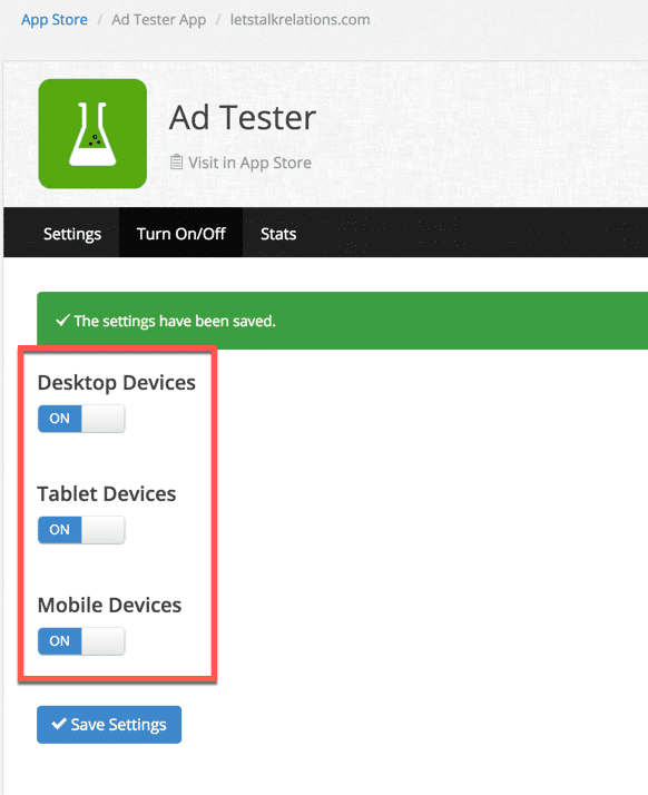 تأكد من الانتقال إلى قسم “تشغيل / إيقاف” وتشغيل أنواع الإعلانات لجميع الأجهزة.