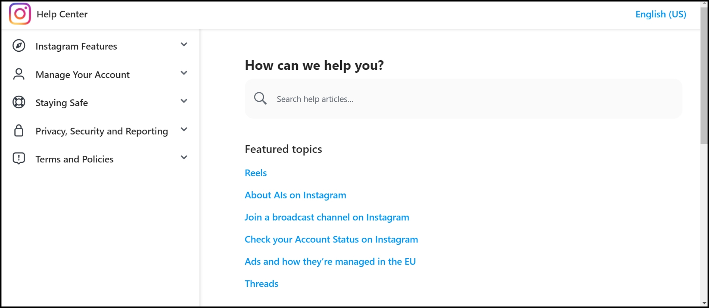 إذا لم تنجح أي من الحلول واستمر الخطأ، تواصل مع دعم Instagram عبر صفحة المساعدة الخاصة بهم للحصول على مزيد من الدعم.