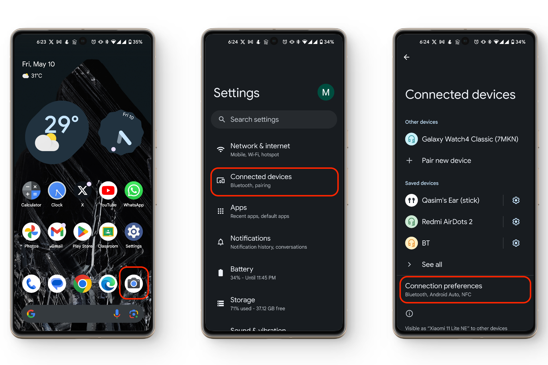 2. انقر على الأجهزة المتصلة > تفضيلات الاتصال > Bluetooth.