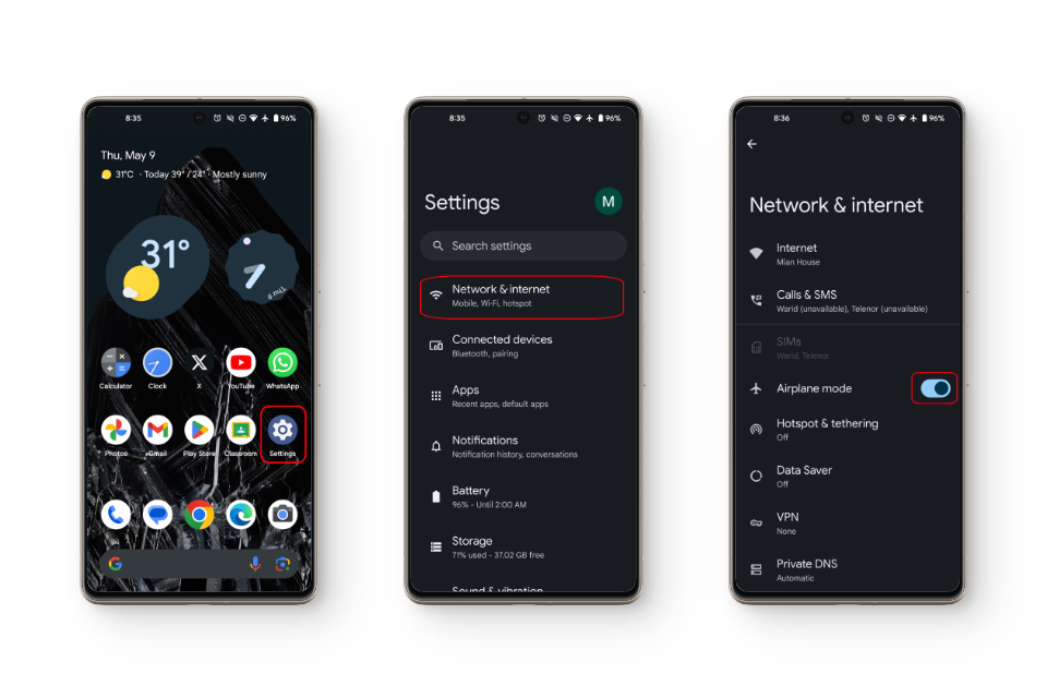 الخطوة 2: تعطيل وضع الطائرة