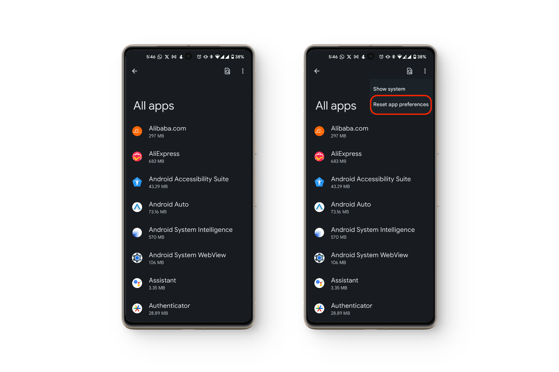 إذا لم تكن المكالمات ترن أو تظهر، فقد يكون تطبيق الاتصال الخاص بك متأثرًا بخلل أو عطل. التطبيق الافتراضي عادةً هو Google Phone، ولكن قد تستخدم شيئًا آخر مثل Truecaller أو Hiya. إعادة تعيين تفضيلات التطبيق تعيدها إلى حالتها الأصلية، مما يتيح لك اختيار تطبيق اتصال مختلف أو مسح أي إعدادات غريبة قد تخفي الإشعارات.