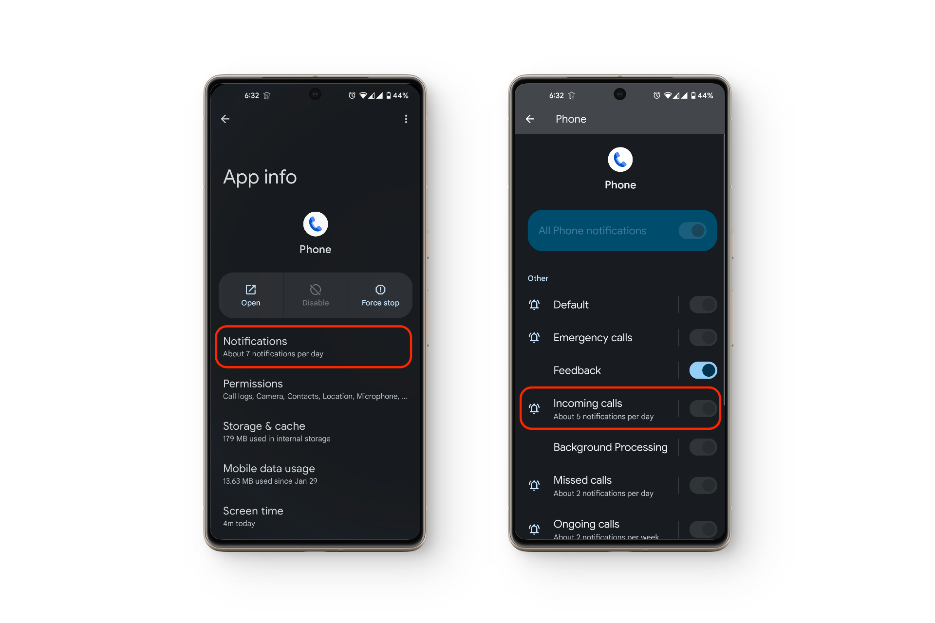 إذا كانت إعدادات الصوت بهاتفك تبدو طبيعية، فقد تكون المشكلة أن إشعارات تطبيق الهاتف نفسه معطلة.