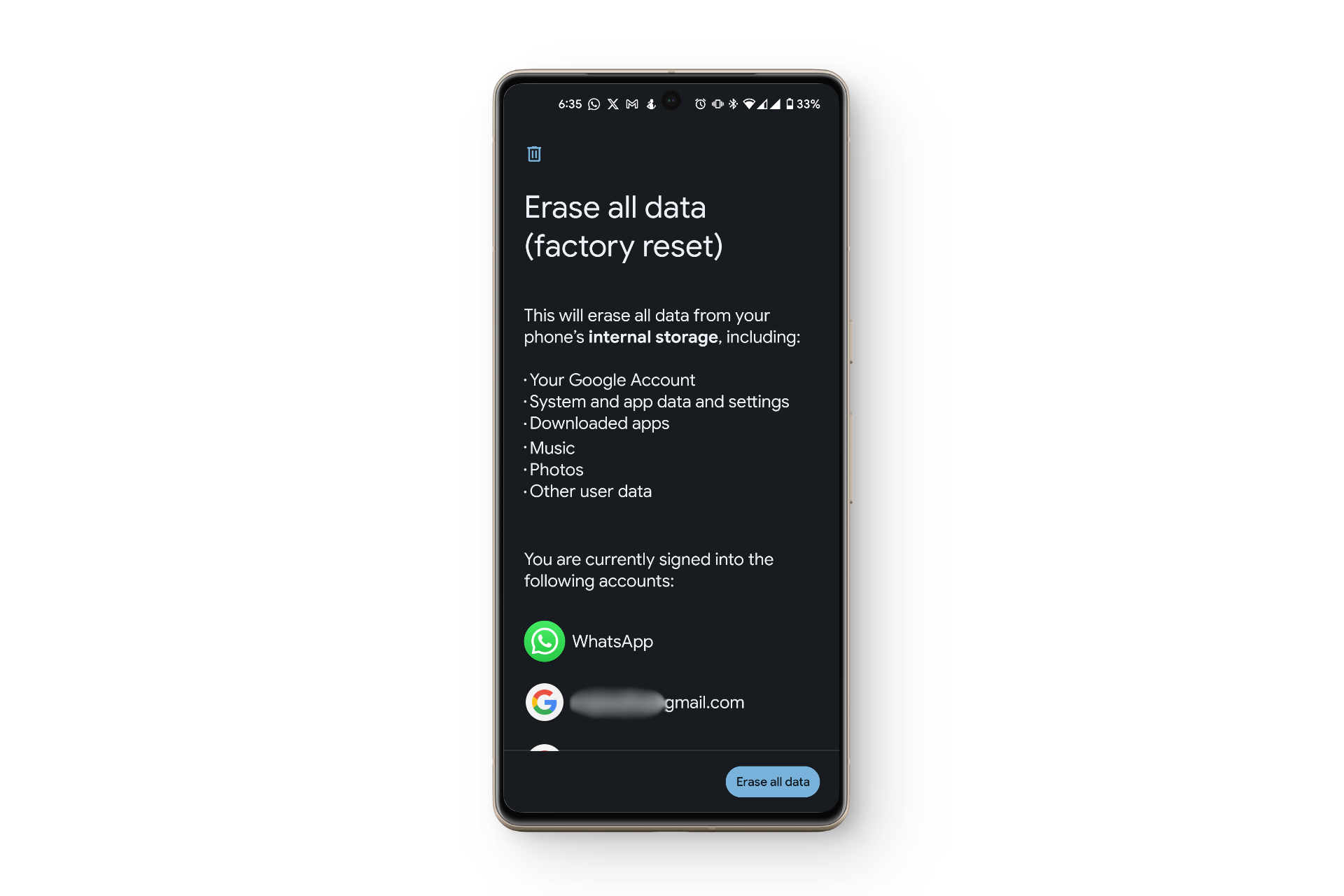 إذا لم ينجح أي شيء آخر، فمن المحتمل أن تكون المشكلة في جانب البرمجيات. في هذه الحالة، أعد ضبط جهازك إلى إعدادات المصنع. كن على دراية بأن هذا سيحذف جميع البيانات الموجودة على هاتفك، لذا قم بعمل نسخة احتياطية لملفاتك المهمة أولاً. بالنسبة لمعظم المستخدمين، غالبًا ما يحل إعادة ضبط المصنع مشكلات الإشعارات.