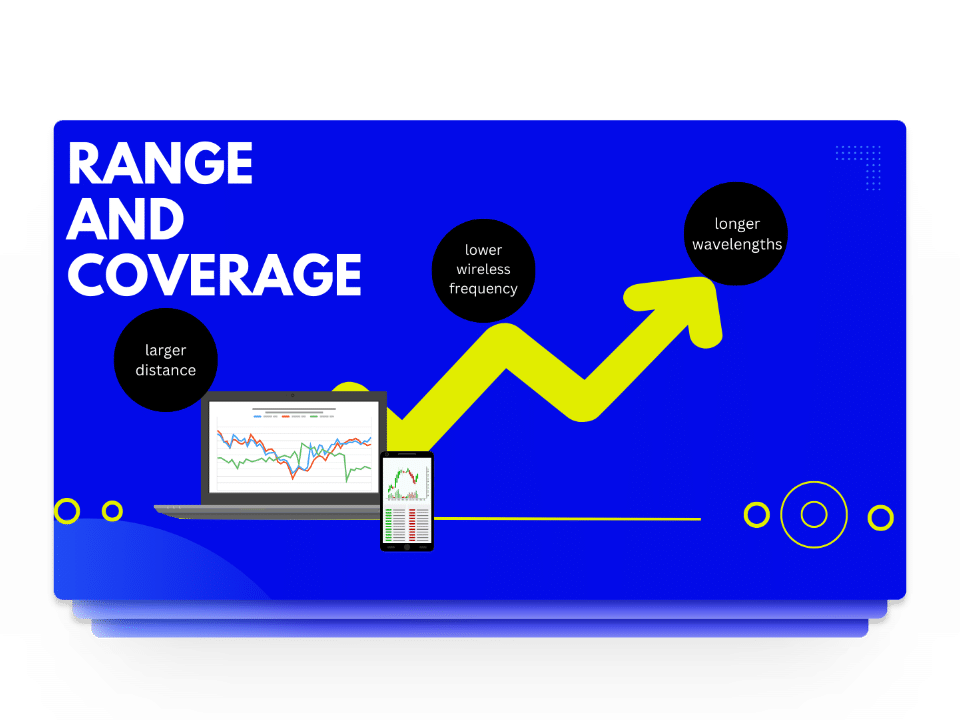 بينما يعتبر 5 جيجاهرتز ممتازًا للسرعات العالية، إلا أنه يقصر في تغطية مسافات أكبر. على العكس من ذلك، فإن أكبر ميزة لـ 2.4 جيجاهرتز هي قدرته على تغطية مسافات أطول. نظرًا لتردده اللاسلكي المنخفض، يمكن لتردد 2.4 جيجاهرتز اختراق الجدران والأجسام الصلبة الأخرى بشكل أفضل من الترددات الأعلى. للمقارنة، تنخفض إشارة 2.4 جيجاهرتز بنسبة 70% عبر ألواح الجبس، بينما تنخفض إشارة 5 جيجاهرتز بنسبة 90%.