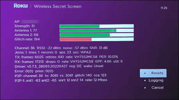 كما يوحي الاسم، تغطي قائمة اللاسلكي في Roku جميع الإعدادات المتعلقة باتصال الإنترنت اللاسلكي الخاص بك. يمكنك التحقق من قوة Wi-Fi لديك، وتفاصيل الهوائي، وقوة الإشارة التي تستقبلها. بالإضافة إلى ذلك، يمكنك إجراء اختبار سرعة نقطة الوصول (AP) عبر هذه القائمة.