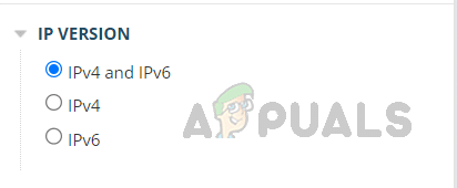في إصدار IP، يمكننا تصفية حركة المرور بناءً على إصدار IP المفضل. لدينا خيارات لاختيار كل من IPv4 و IPv6، أو حركة مرور IPv4 فقط، أو حركة مرور IPv6 فقط.