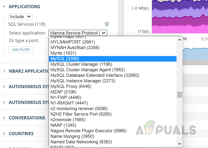 4. انقر على إضافة عامل تصفية بعد تحديد كل تطبيق لإضافة التطبيق إلى عامل تصفية العرض. يمكنك أيضًا استخدام رقم المنفذ لتصفية التطبيق.