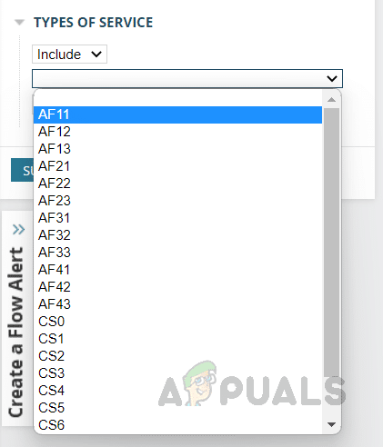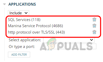 باستخدام هذا الخيار، يمكننا تصفية حركة المرور بناءً على أنواع الخدمة. حدد الخدمة التي تريد تضمينها أو استبعادها من القائمة وانقر على إضافة عامل تصفية.